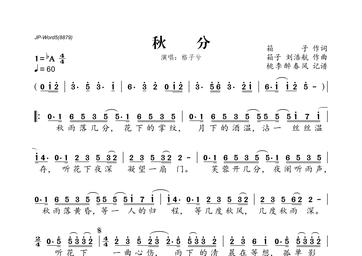 格子兮《秋分》简谱