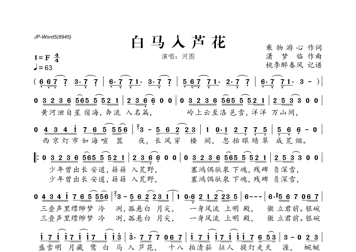 河图《白马入芦花》简谱