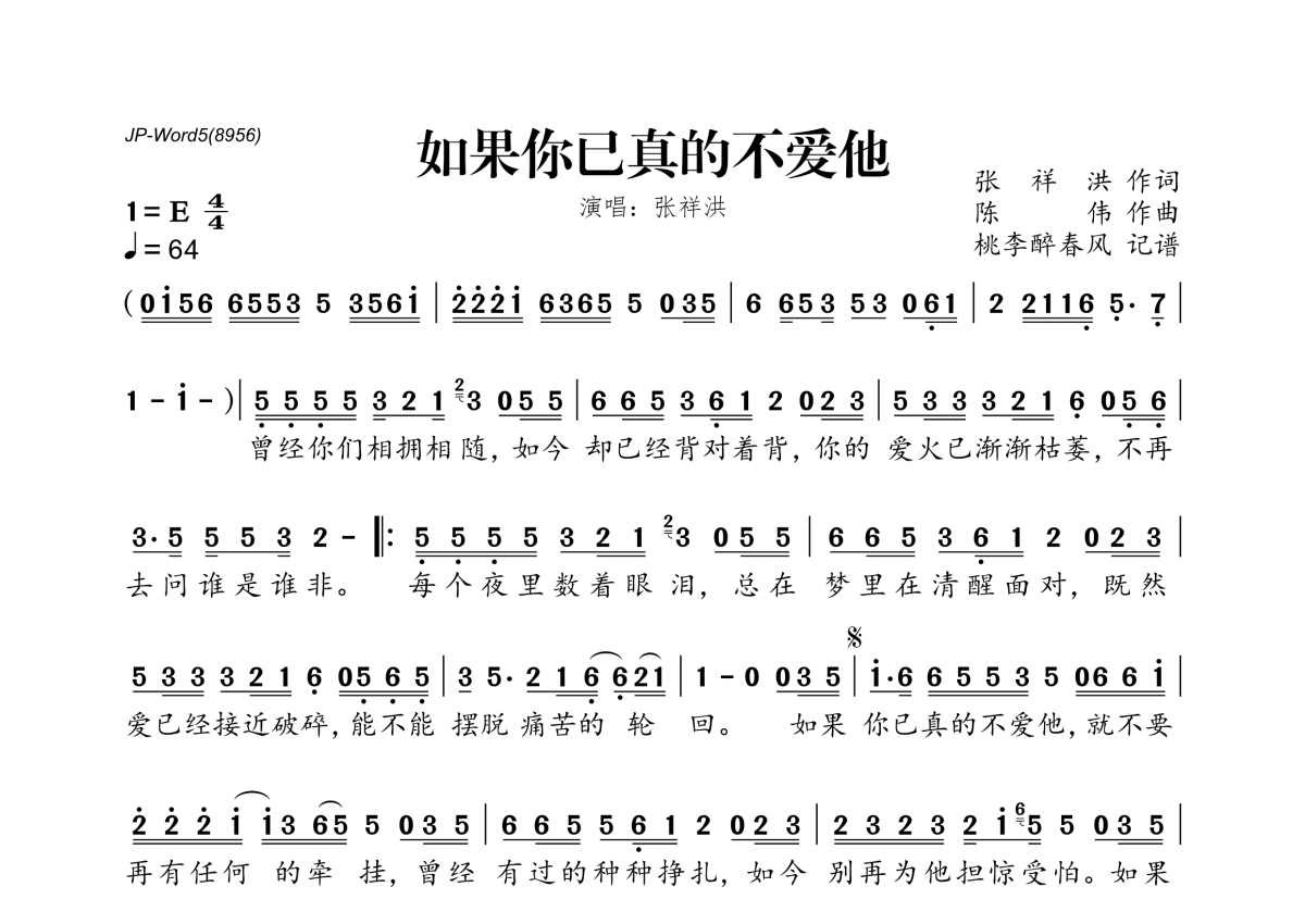 张祥洪《如果你已真的不爱他》简谱