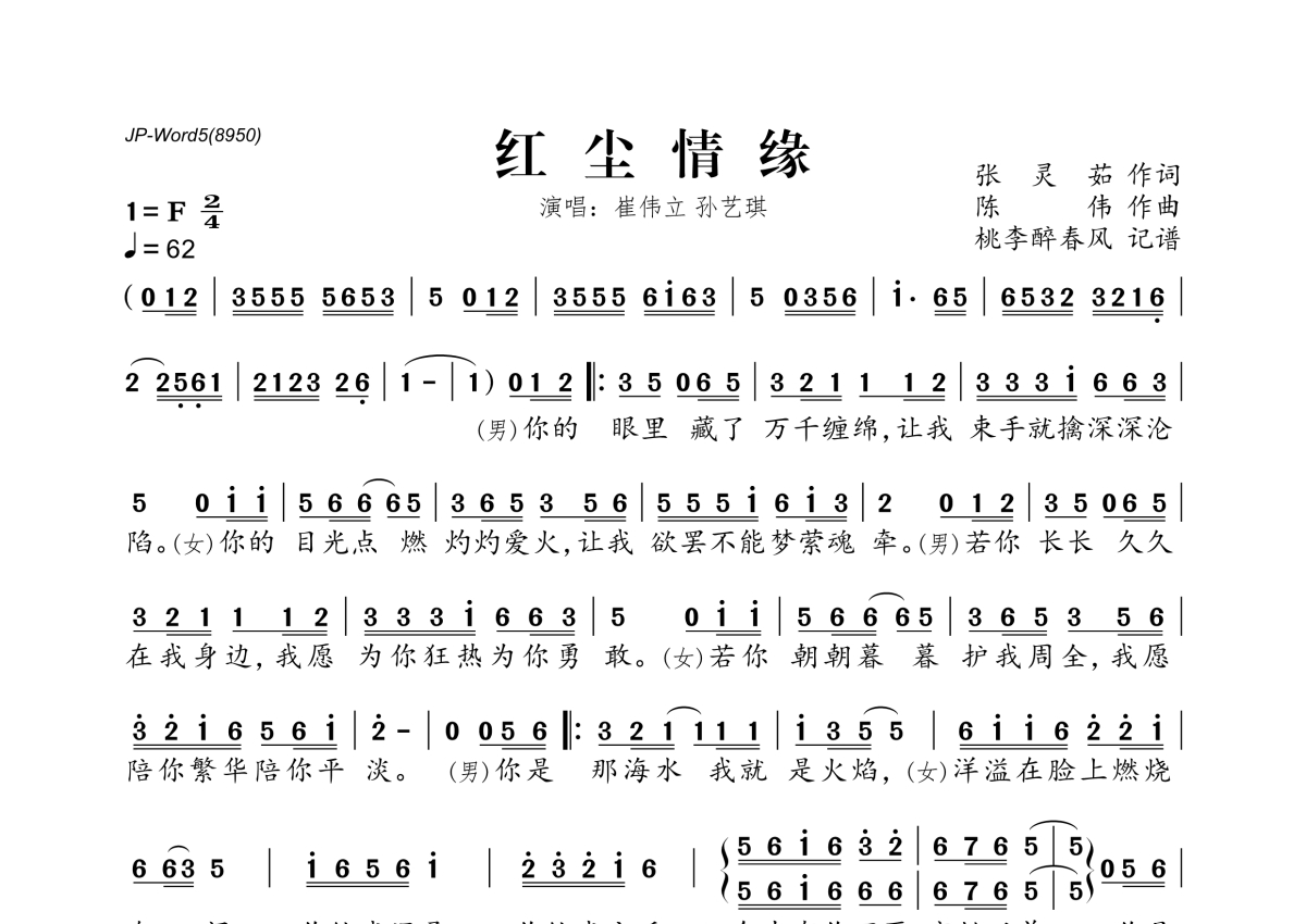 崔伟立&孙艺琪《红尘情缘》简谱