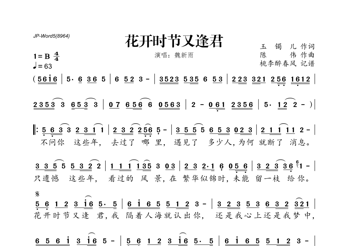 魏新雨《花开时节又逢君》简谱