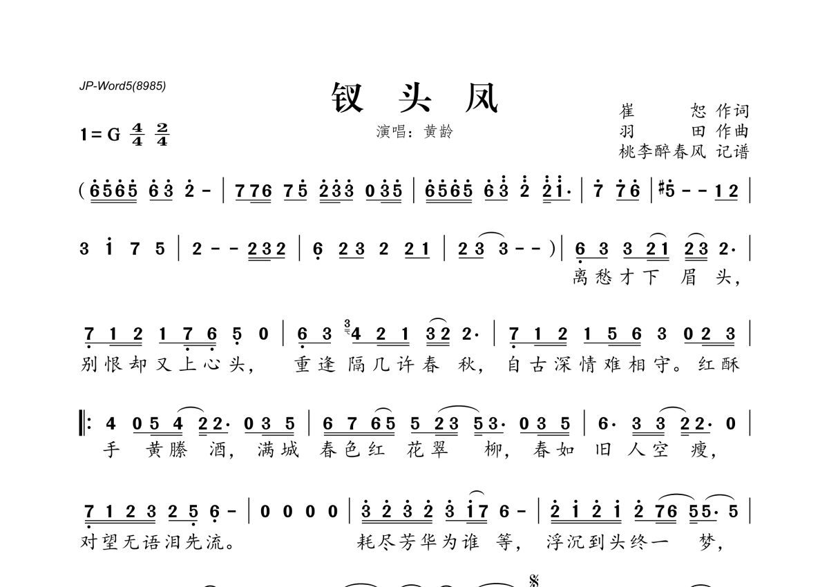 黄龄《钗头凤》简谱