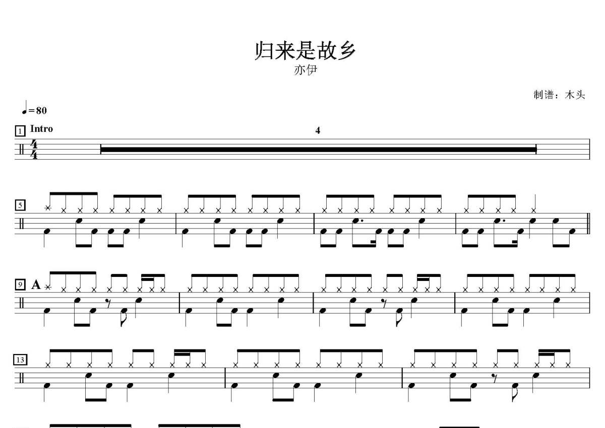 亦伊《归来是故乡》鼓谱 - 架子鼓谱