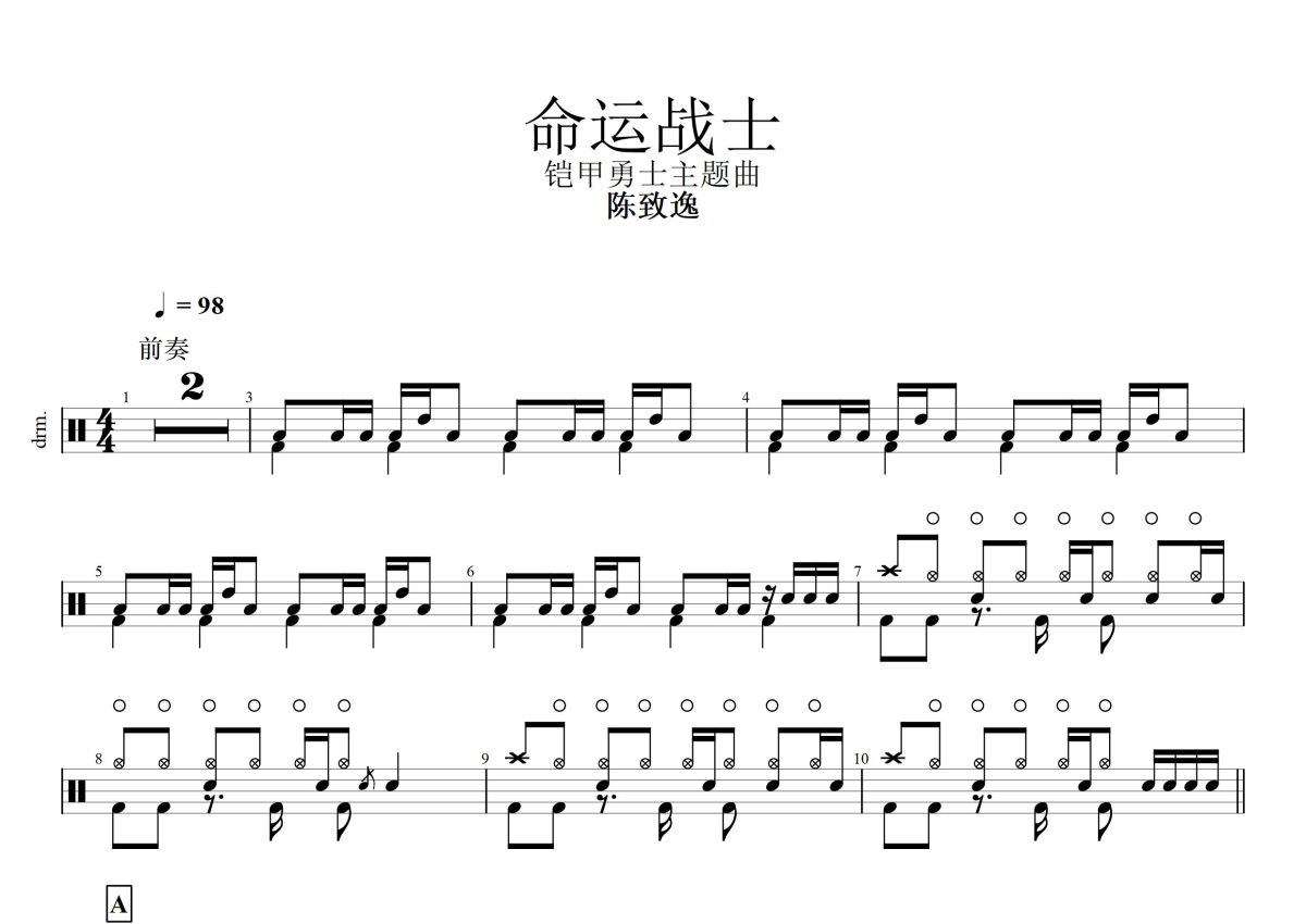 陈致逸《命运战士》鼓谱 - 架子鼓谱
