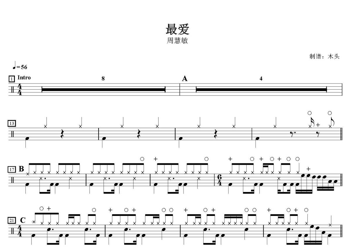 《最爱》是周慧敏演唱的一首歌曲,这份鼓谱共有两张高清图谱,图谱由 @打鼓谱 编配上传,图谱使用五线谱编配,使用这份最爱架子鼓谱,你将能够轻松地敲打出这首周慧敏的最爱,快来尝试吧。歌曲名:最爱,歌手名:周慧敏,专辑名:真女人情歌。