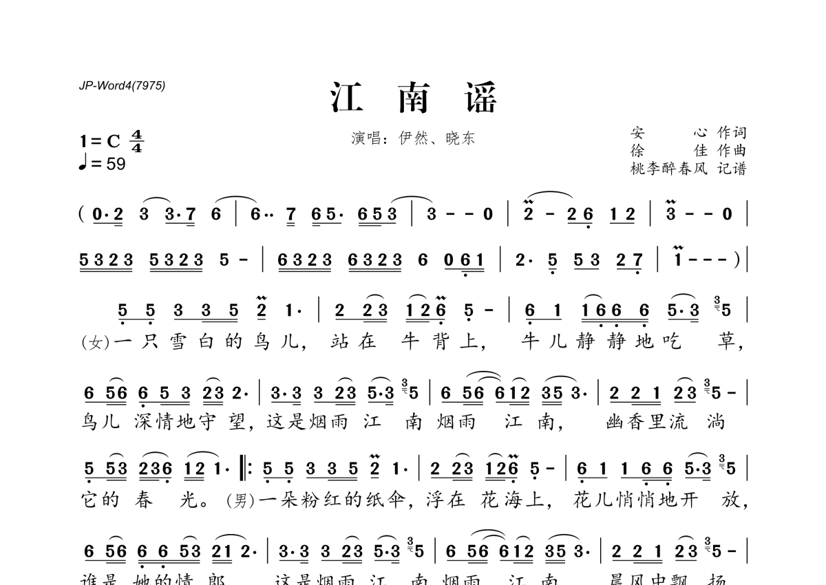 江南谣简谱 - 伊然&晓东演唱