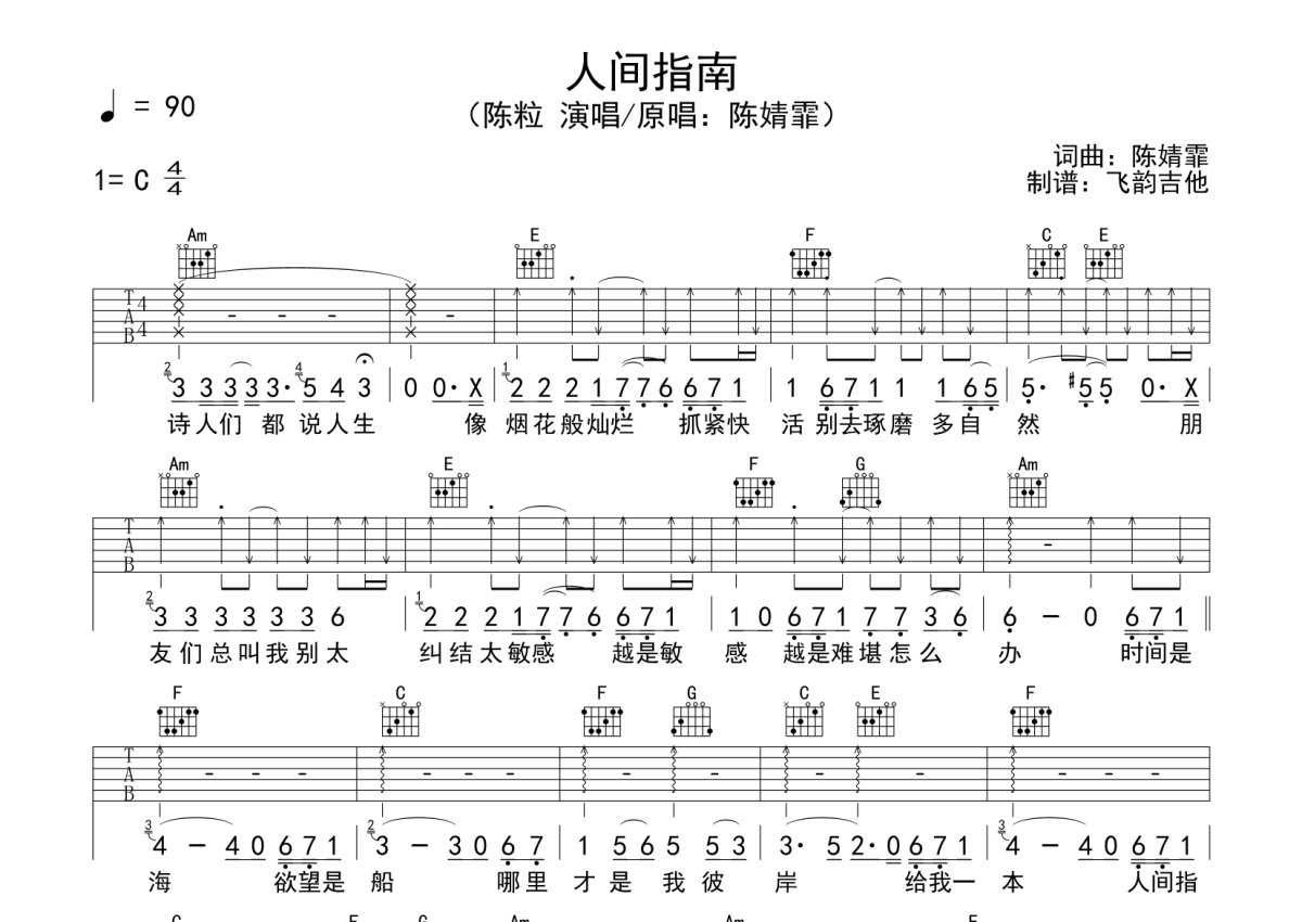 《人间指南》是陈粒演唱的一首歌曲,B站弹唱版,本吉他谱采用的是C调指法编配,这份吉他谱共有一张高清图谱,图谱由 @何奔洋 编配上传,图谱使用六线谱编配,包含吉他和弦指法、简谱以及歌词部分,使用这份人间指南吉他谱,可以让你更加方便地掌握这首歌曲的弹唱技巧,快来尝试吧。陈粒《人间指南》吉他谱_C调吉他弹唱谱_B站弹唱版。