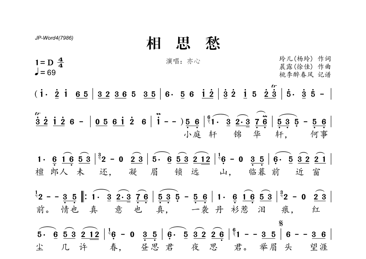 亦心《相思愁》简谱