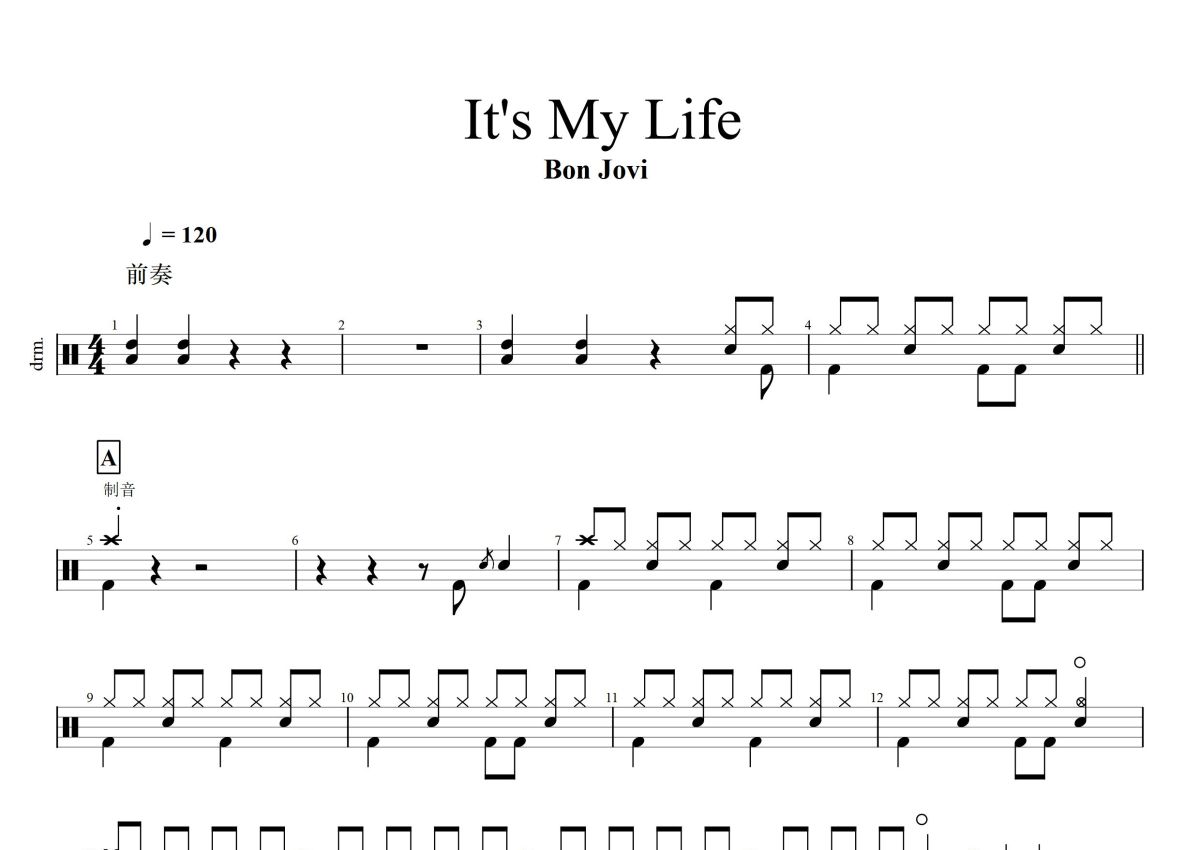 《It's My Life》是Bon Jovi演唱的一首歌曲,这份鼓谱共有三张高清图谱,图谱由 @打鼓谱 编配上传,图谱使用五线谱编配,使用这份It's My Life架子鼓谱,你将能够轻松地敲打出这首Bon Jovi的It's My Life,快来尝试吧。《It's My Life》是美国硬摇滚乐队Bon Jovi的专辑Crush 中的一首歌曲。歌曲最先收录在同名EP It's My Life 中。邦乔维(Bon Jovi),美国硬摇滚乐队,1983年成立于美国新泽西赛瑞维尔市,由主唱乔恩·邦·乔维(Jon Bon Jovi)、吉他手瑞奇·山伯拉(Richie Sambora)、键盘手大卫‧布莱恩(David Bryan)、贝斯手艾力克·约翰·萨奇(Alec John Such)、鼓手堤可·托雷斯(Tico Torres)组成。艾力克于1994年离队,而担。