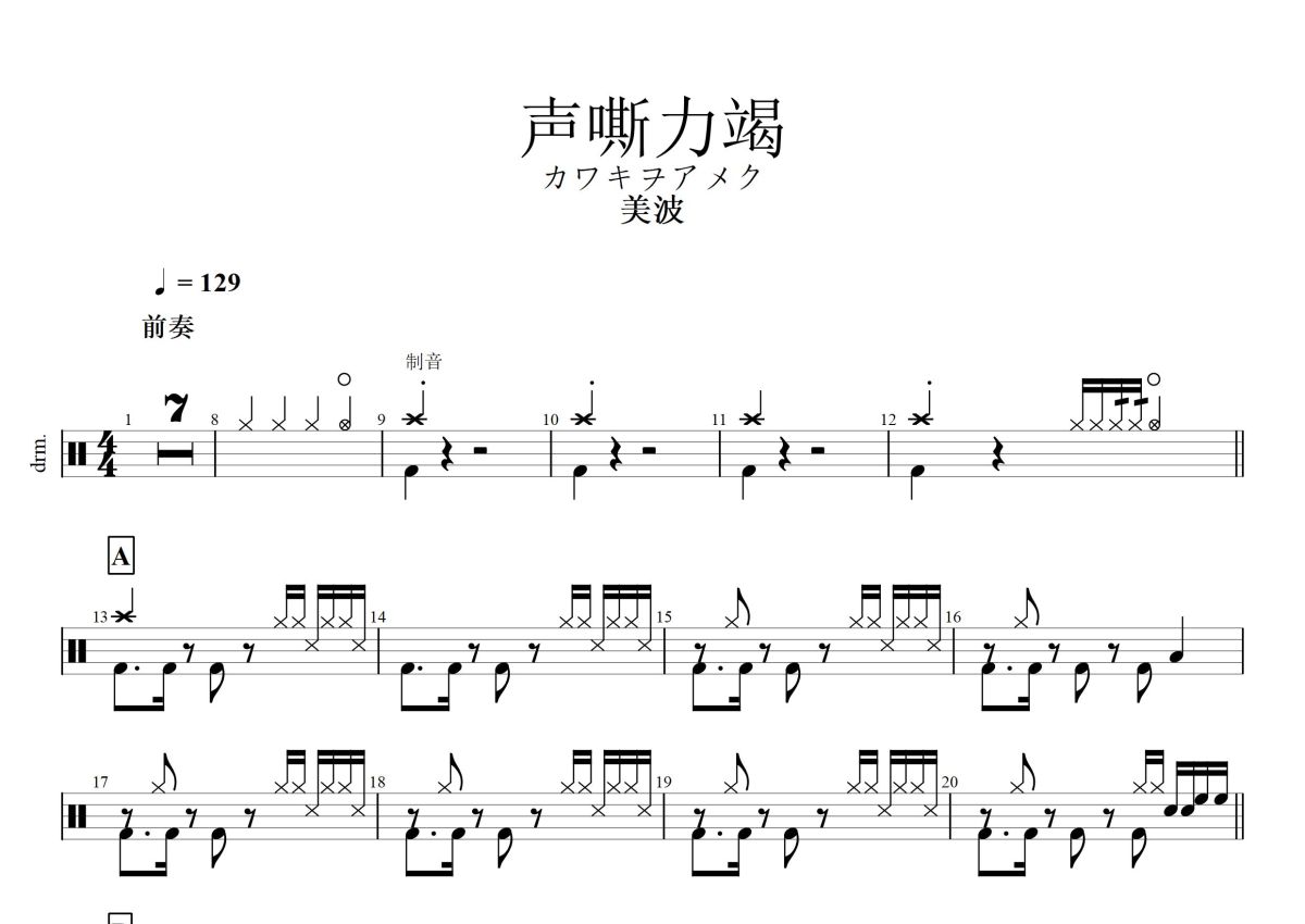 美波《声嘶力竭》鼓谱 - 架子鼓谱