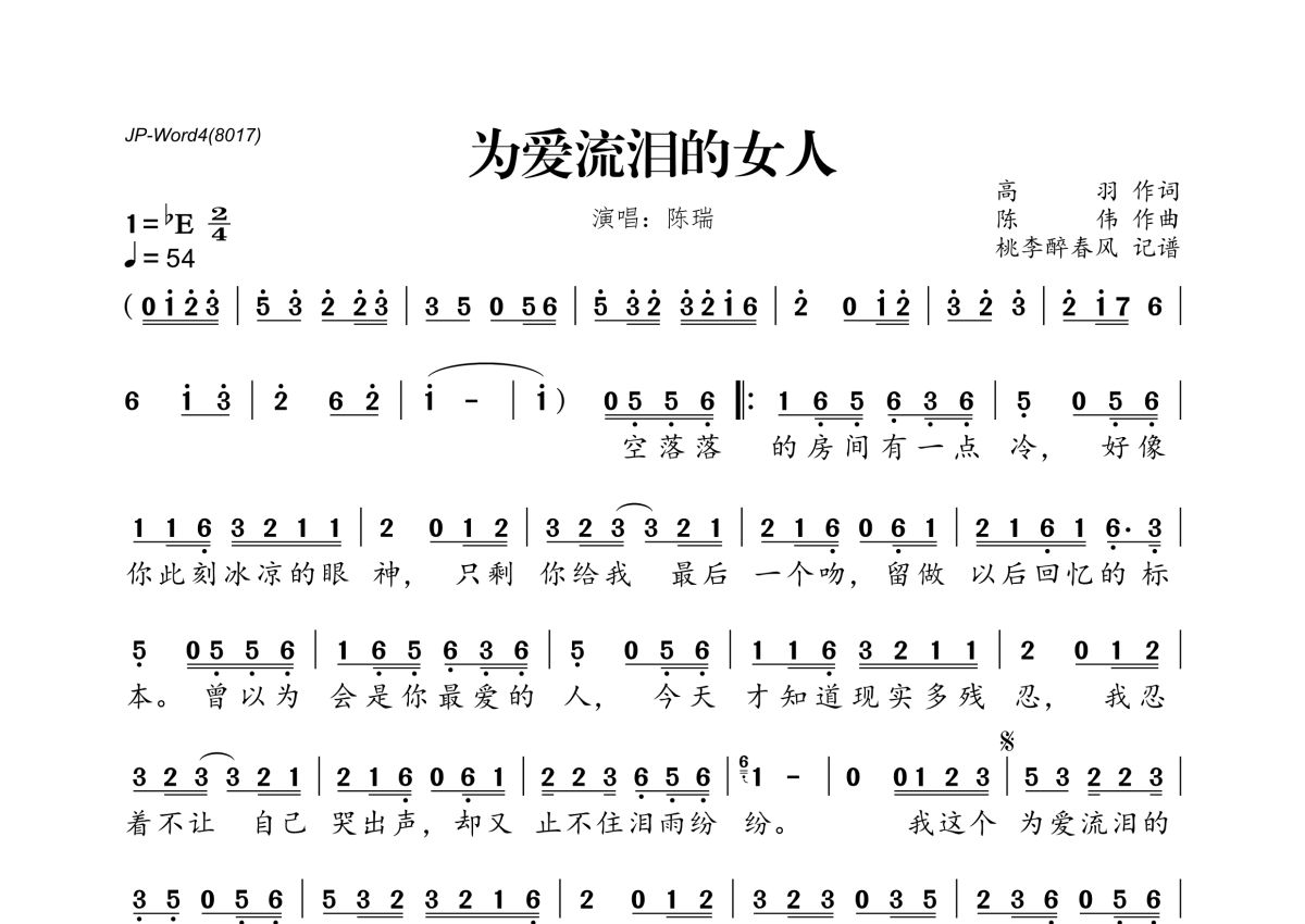 为爱流泪的女人简谱 - 陈瑞演唱