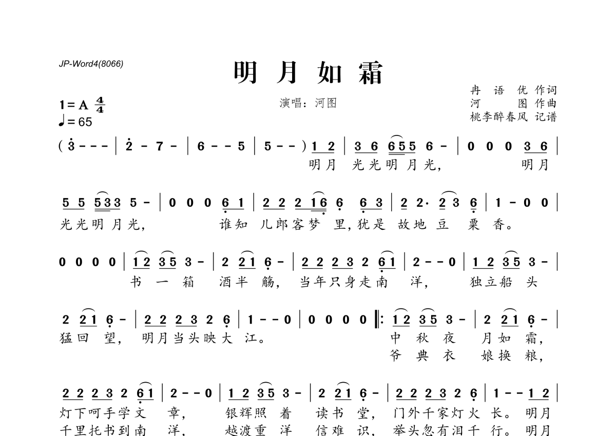 河图《明月如霜》简谱
