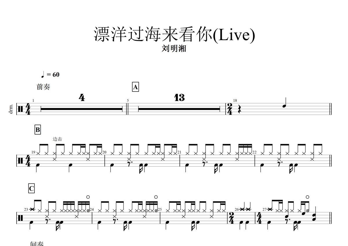 刘明湘《漂洋过海来看你》鼓谱 - 架子鼓谱