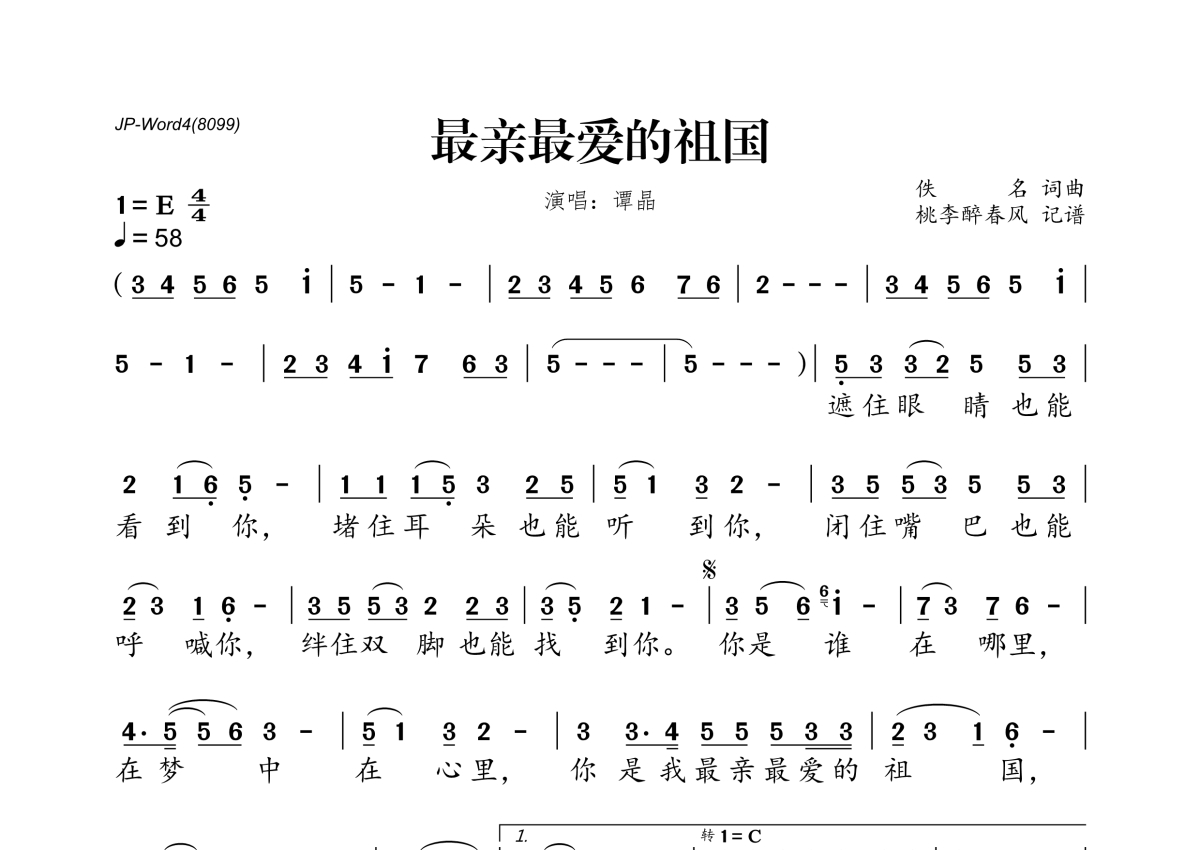 谭晶《最亲最爱的祖国》简谱