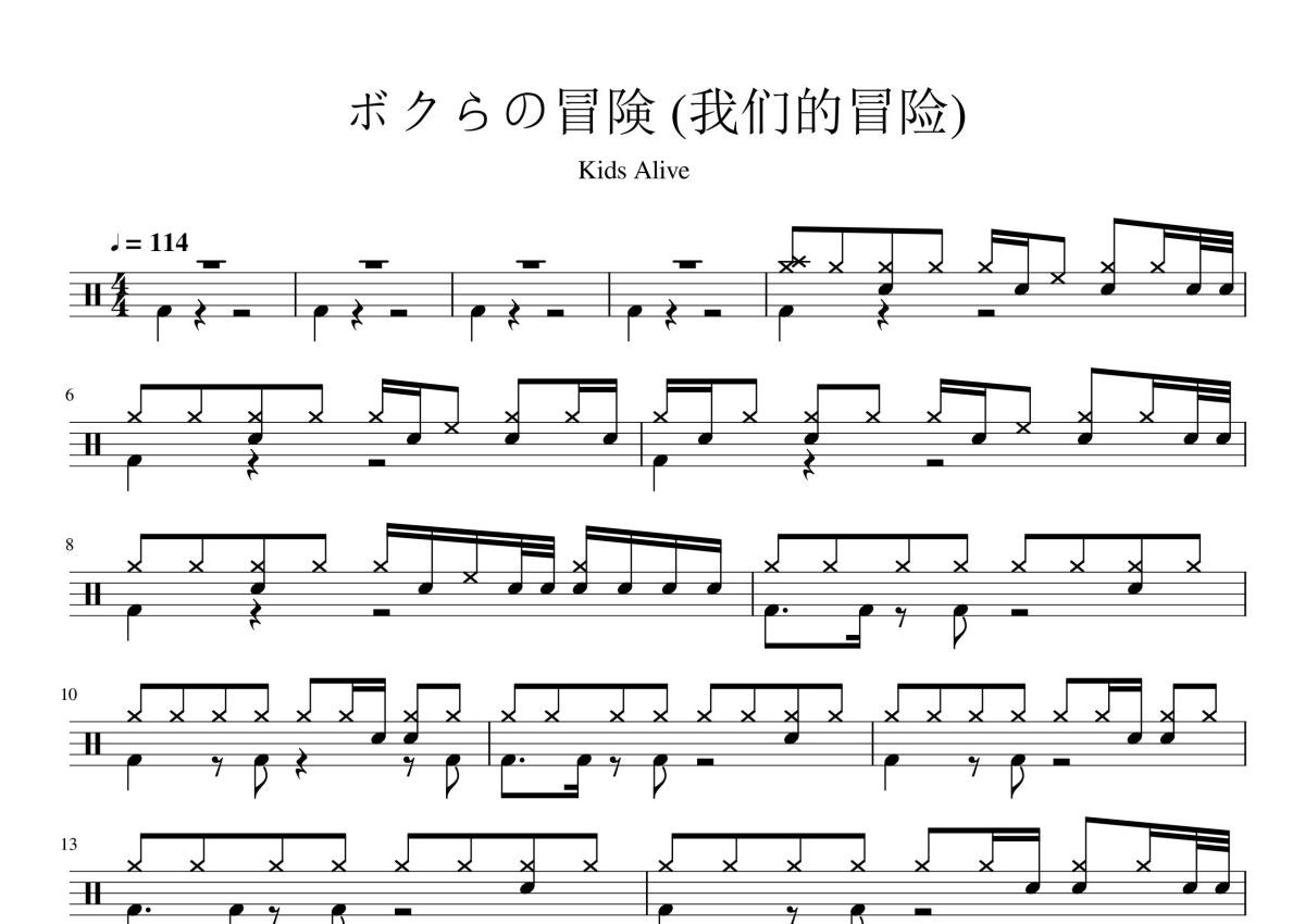 Kids Alive《ボクらの冒険》鼓谱 - 架子鼓谱