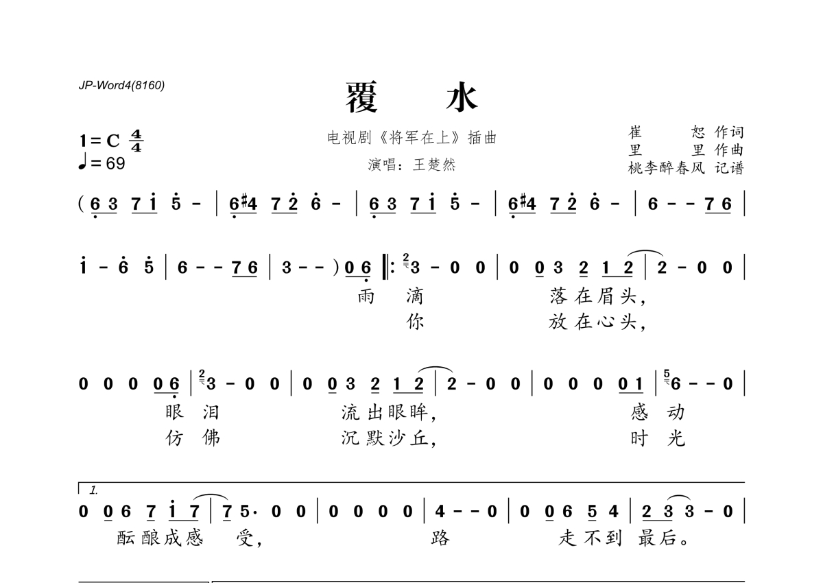王楚然《覆水》简谱