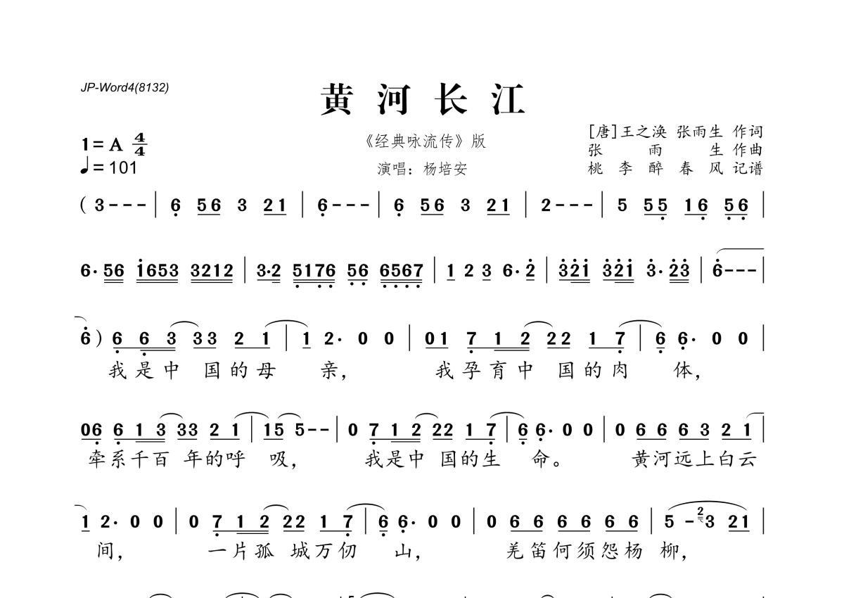 杨培安《黄河长江》简谱