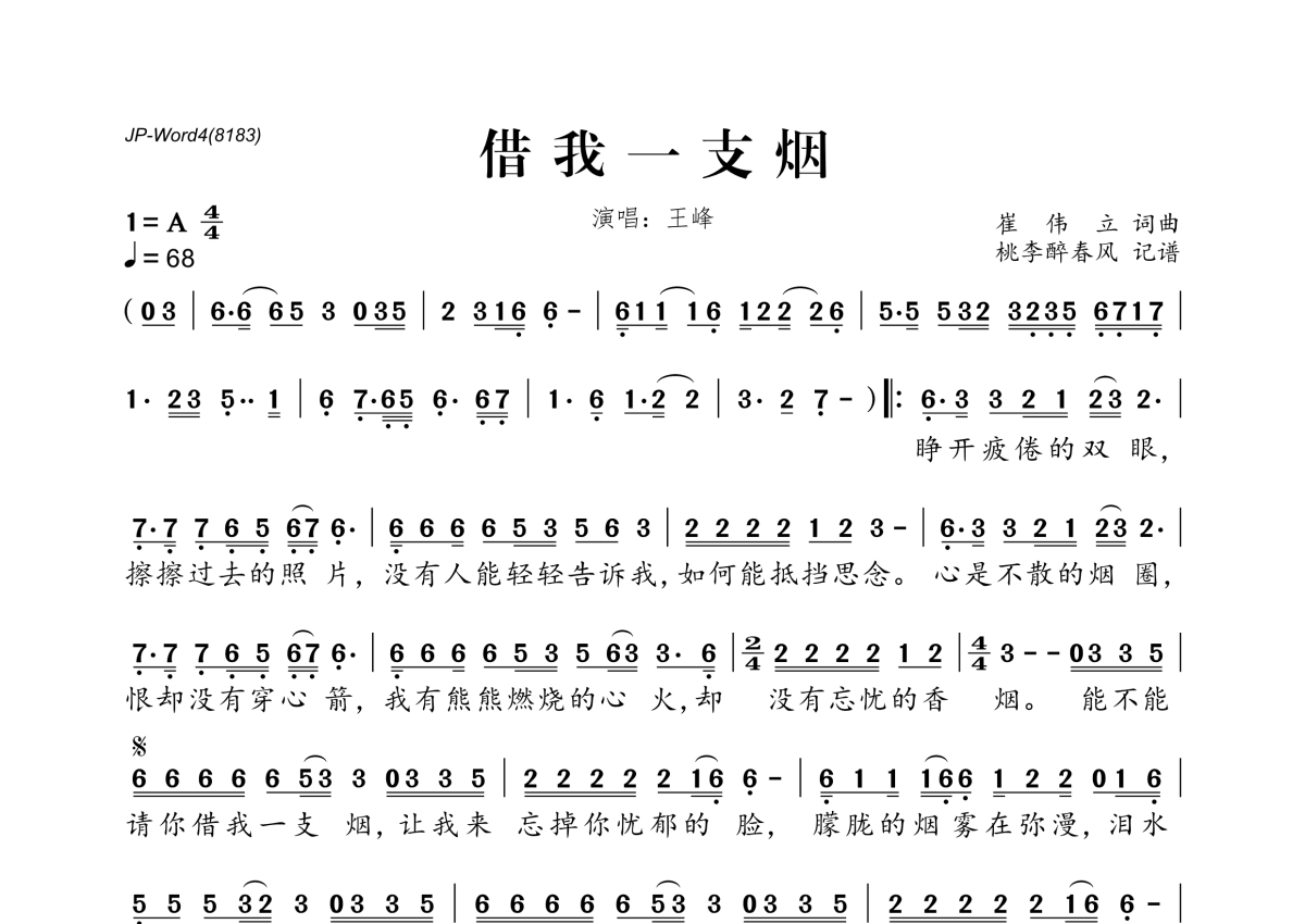 《借我一支烟》简谱 - 王峰