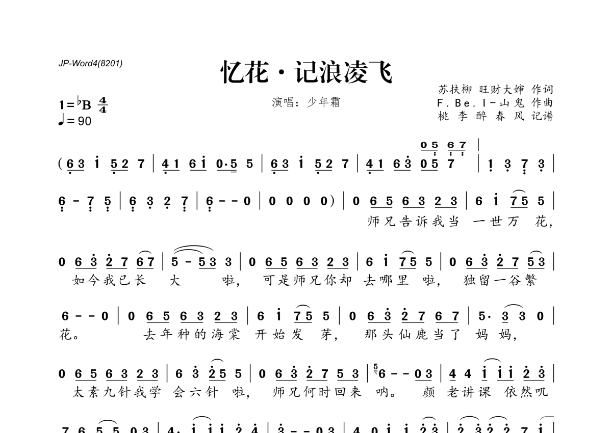 少年霜《忆花·记浪凌飞》简谱