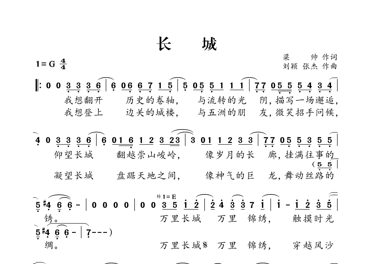 《长城》是佚名演唱的一首歌曲,拍号为4/4拍,这份简谱共有一张高清图谱,图谱由 @桃李醉春风 编配上传。