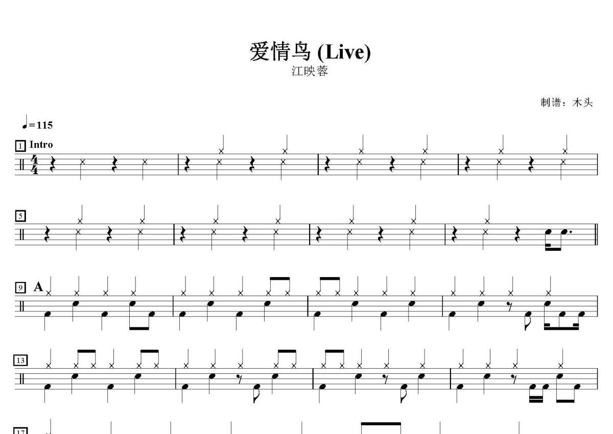 江映蓉《爱情鸟》鼓谱 - 架子鼓谱 - Live