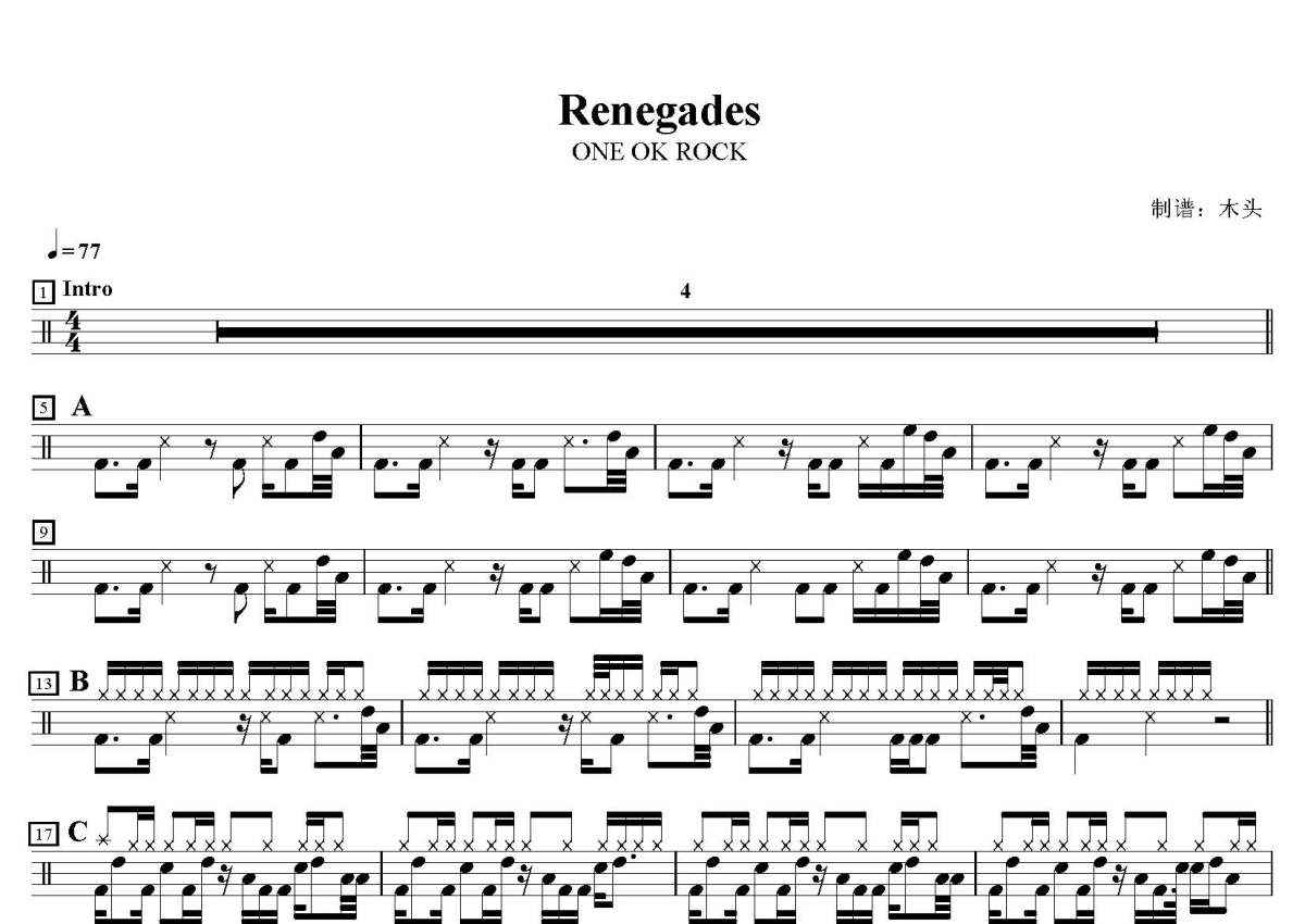 ONE OK ROCK《Renegades》鼓谱 - 架子鼓谱