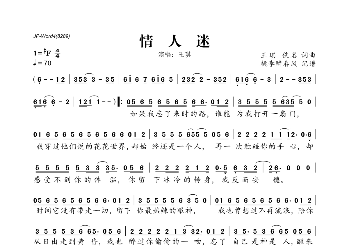 王琪《情人迷》简谱