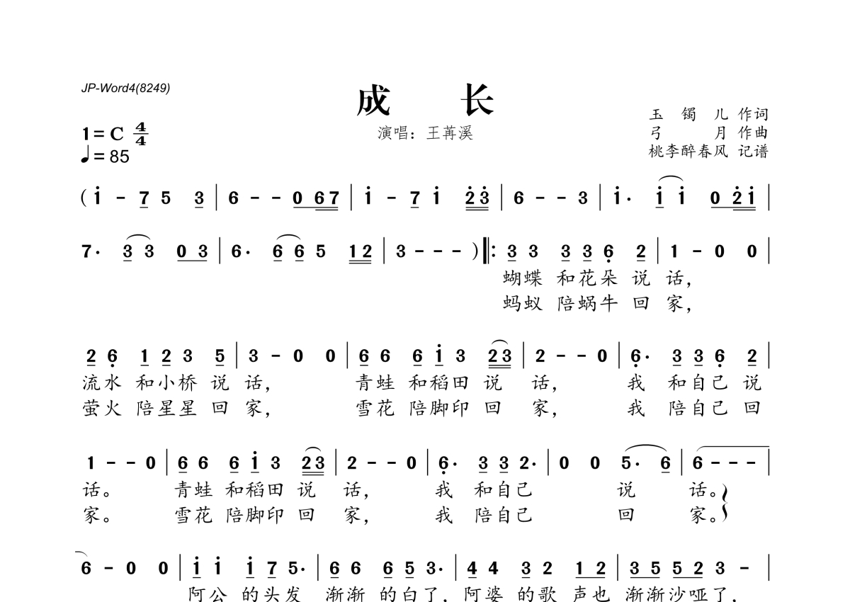 《成长》是我们怎么了演唱的一首歌曲,拍号为4/4拍,这份简谱共有一张高清图谱,图谱由 @桃李醉春风 编配上传。