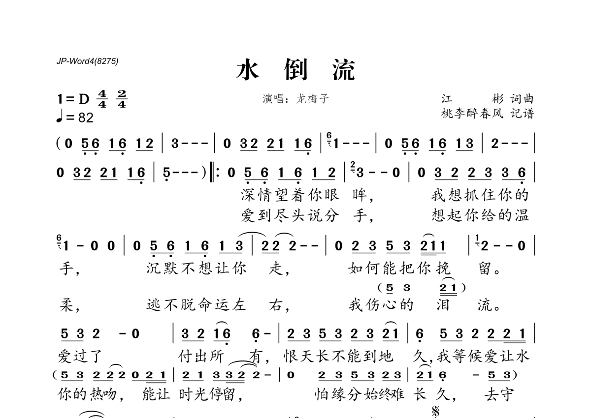 水倒流简谱 - 龙梅子演唱