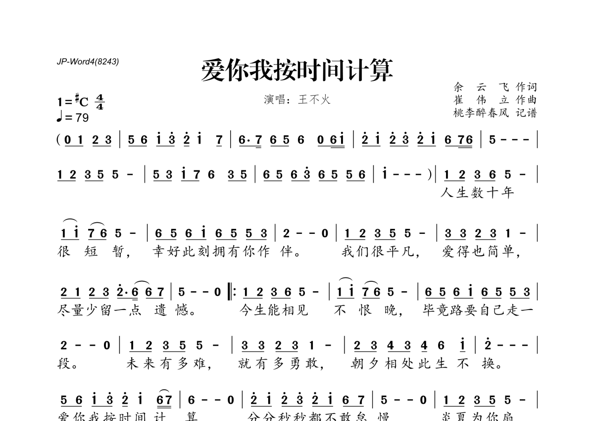 王不火《爱你我按时间计算》简谱