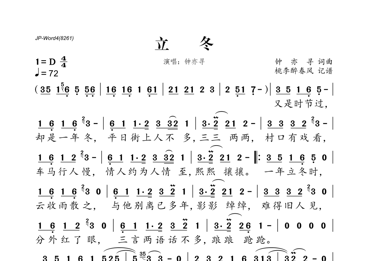 钟亦寻《立冬》简谱