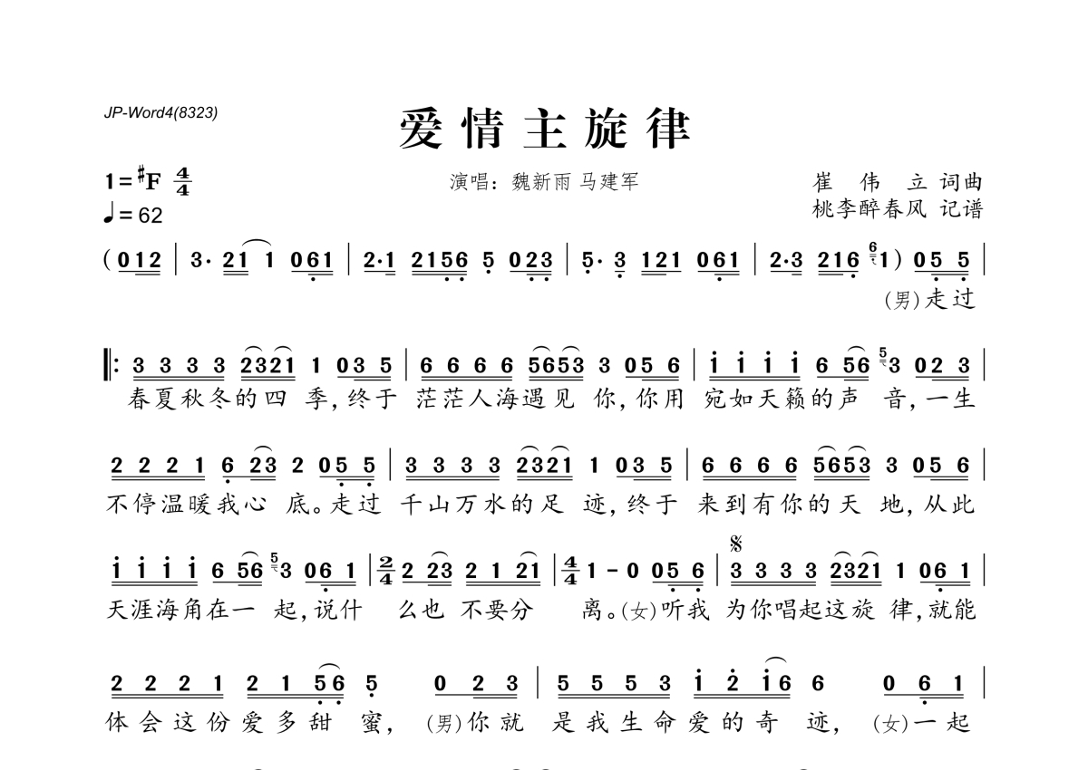 魏新雨&马建军《爱情主旋律》简谱