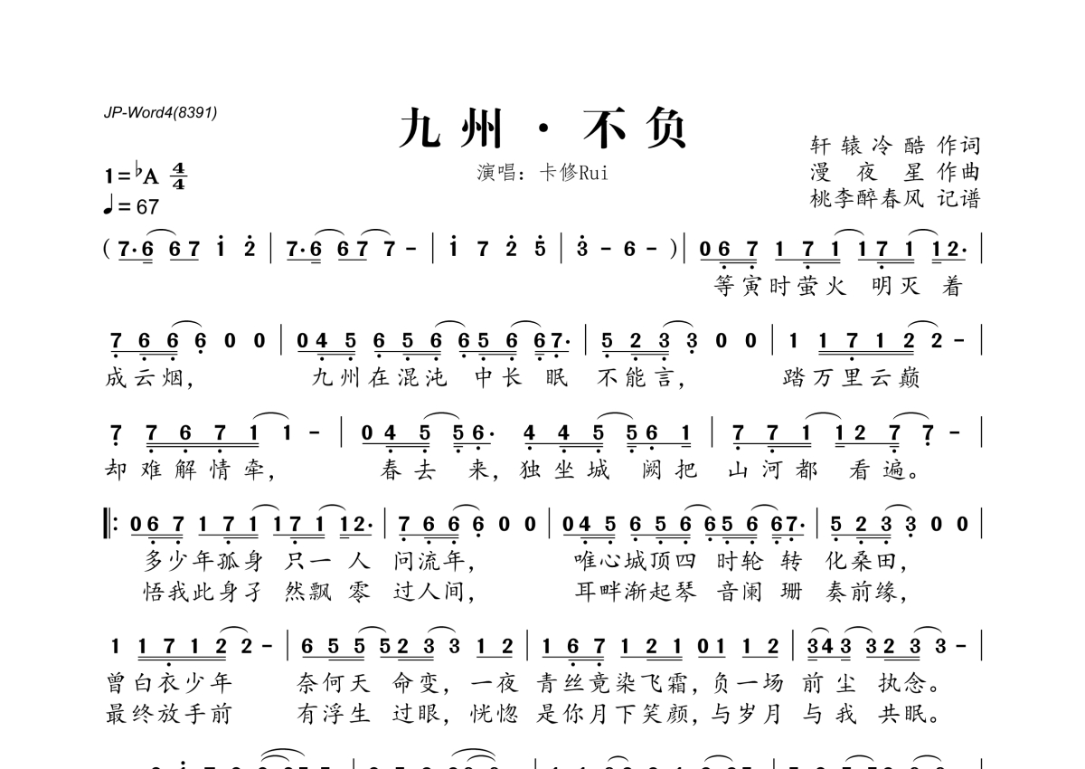 卡修Rui《九州·不负》简谱