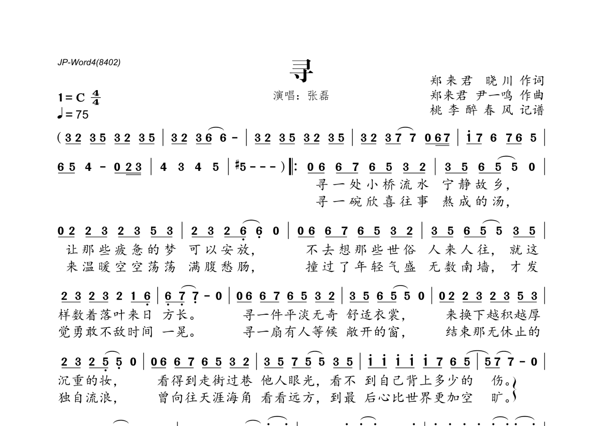 张磊《寻》简谱