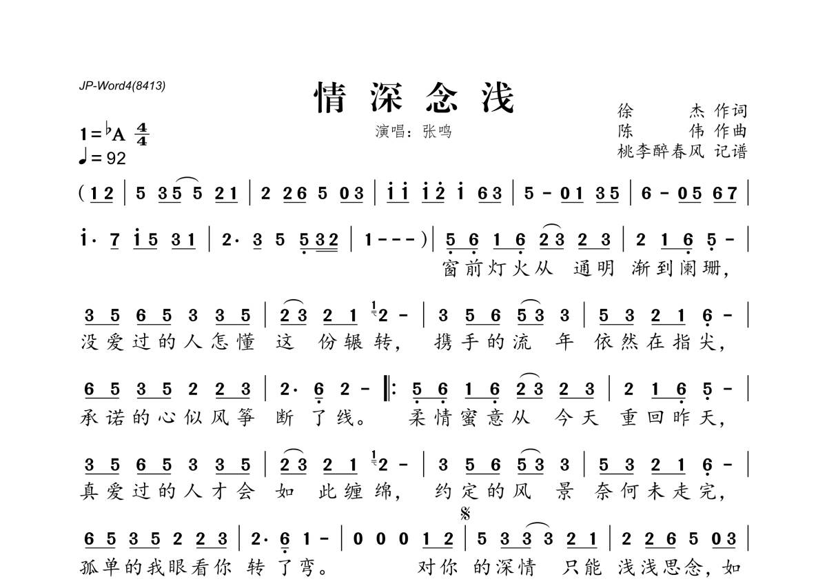 张鸣《情深念浅》简谱