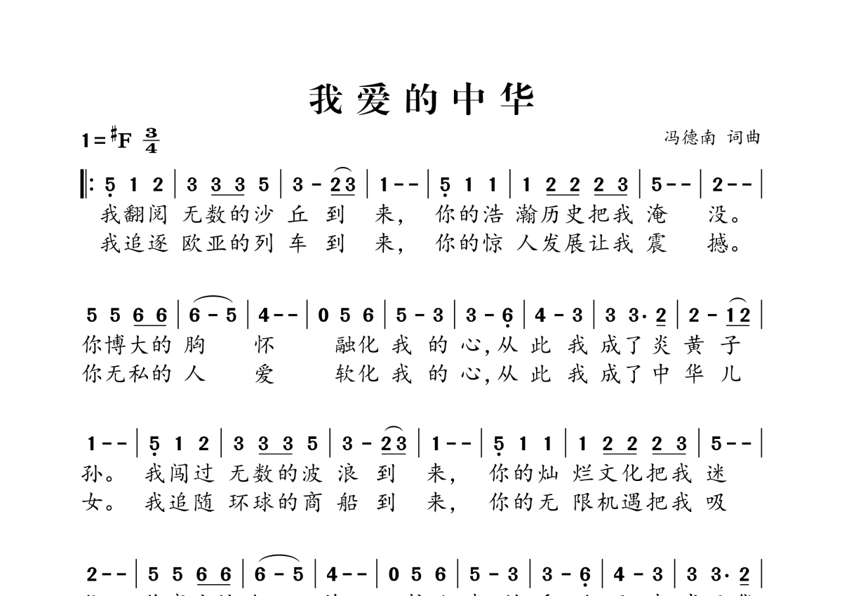 《我爱的中华》是佚名演唱的一首歌曲,拍号为3/4拍,这份简谱共有一张高清图谱,图谱由 @桃李醉春风 编配上传。
