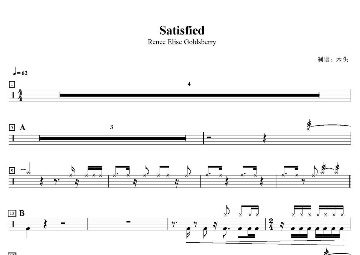 Renee Elise Goldsberry《Satisfied》鼓谱 - 架子鼓谱