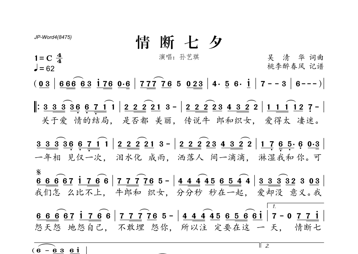 孙艺琪《情断七夕》简谱