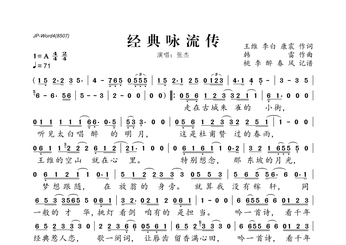 张杰《经典咏流传》简谱