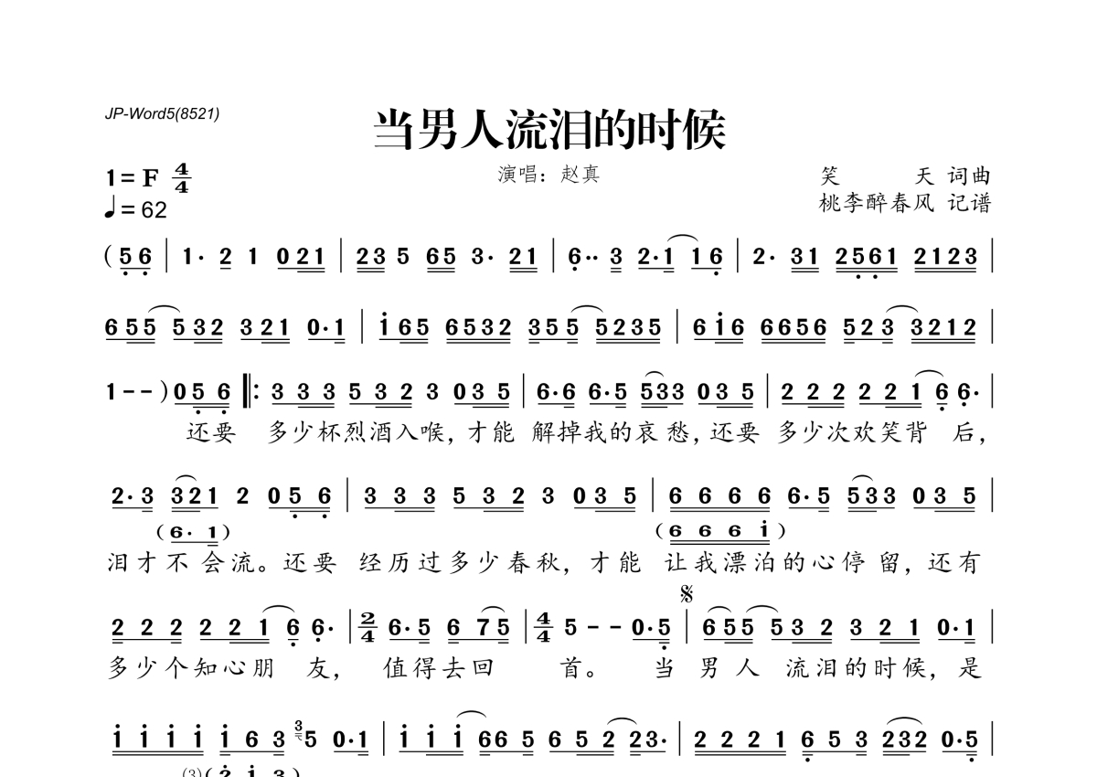 赵真《当男人流泪的时候》简谱