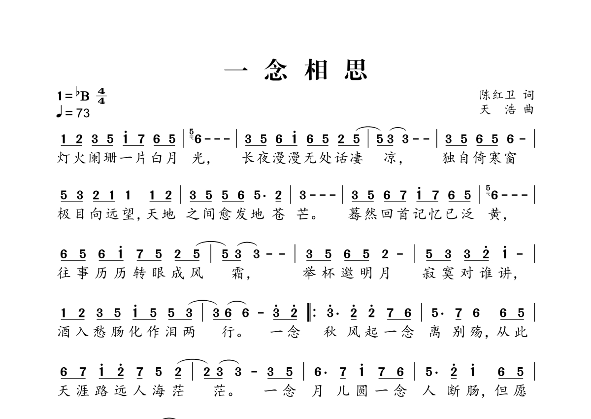 《一念相思》是佚名演唱的一首歌曲,拍号为4/4拍,歌曲速度为每分钟73拍,这份简谱共有一张高清图谱,图谱由 @桃李醉春风 编配上传。