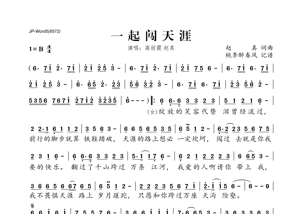 赵真&高丽霞《一起闯天涯》简谱