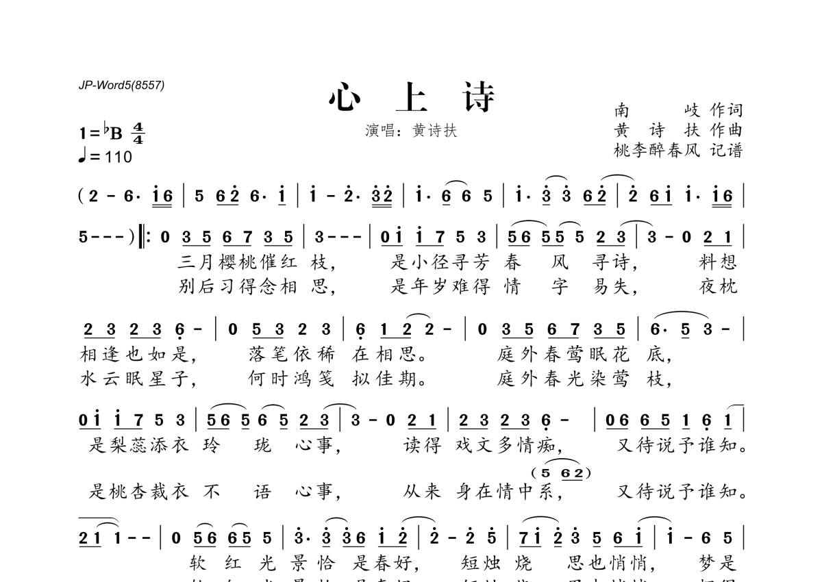 黄诗扶《心上诗》简谱