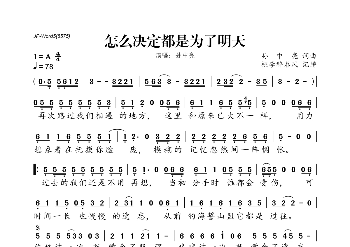 孙中亮《怎么决定都是为了明天》简谱