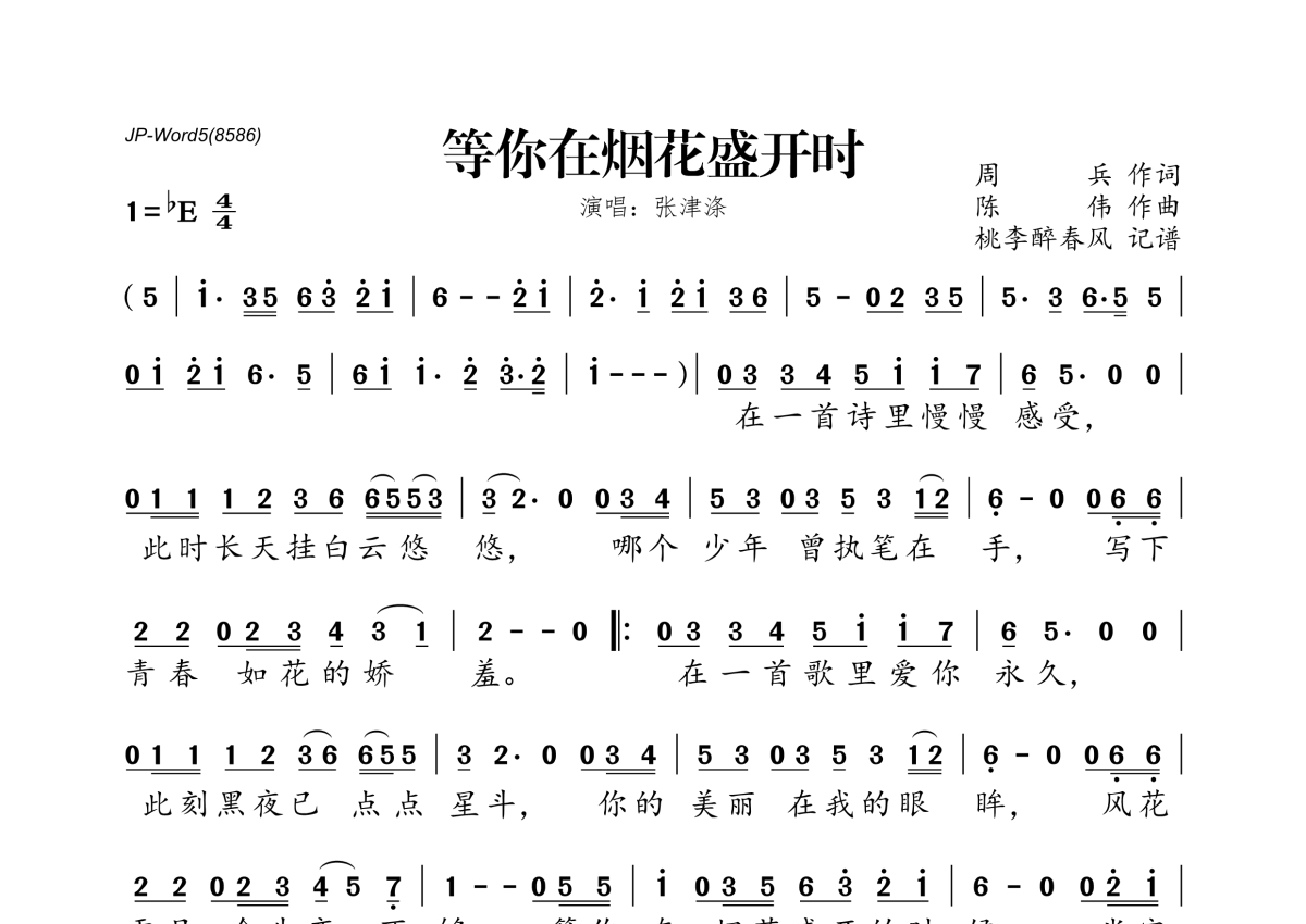 张津涤《等你在烟花盛开时》简谱
