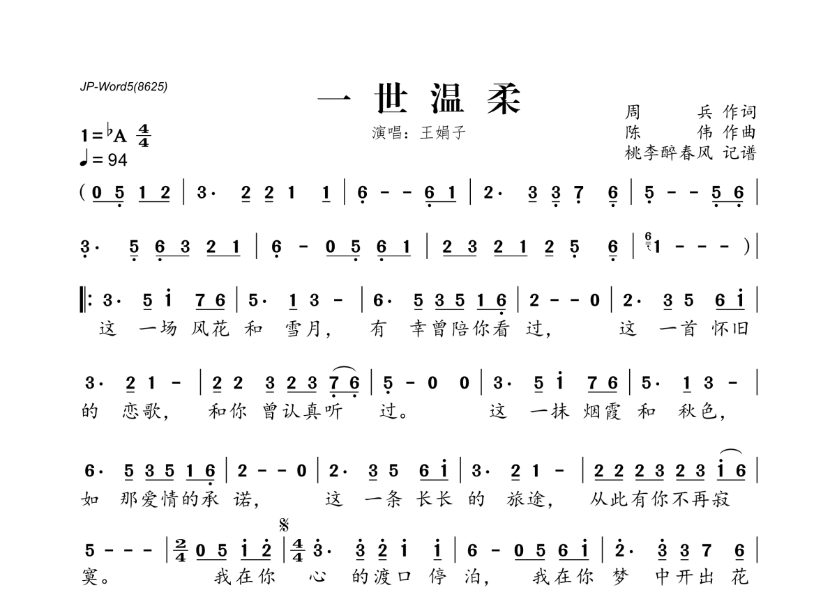 王娟子《一世温柔》简谱