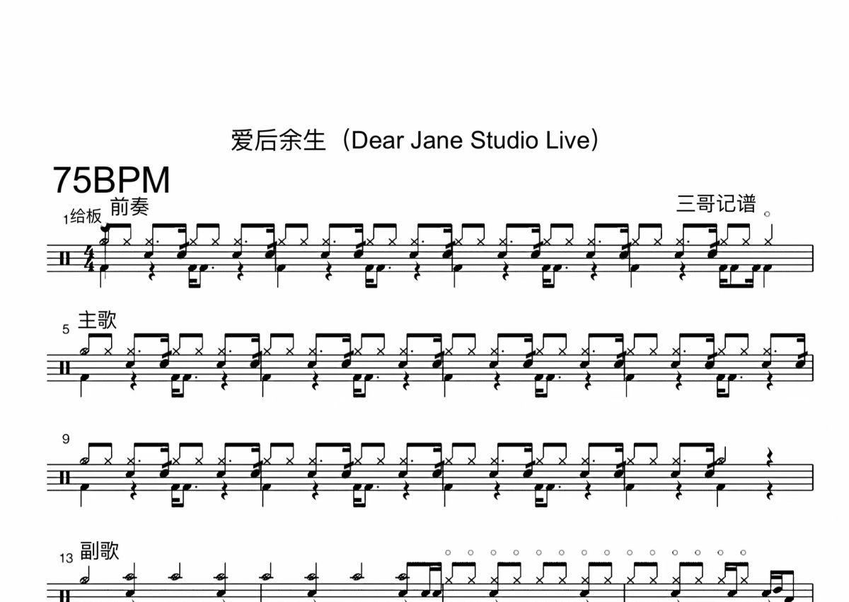 Dear Jane《爱后余生》鼓谱 - 架子鼓谱