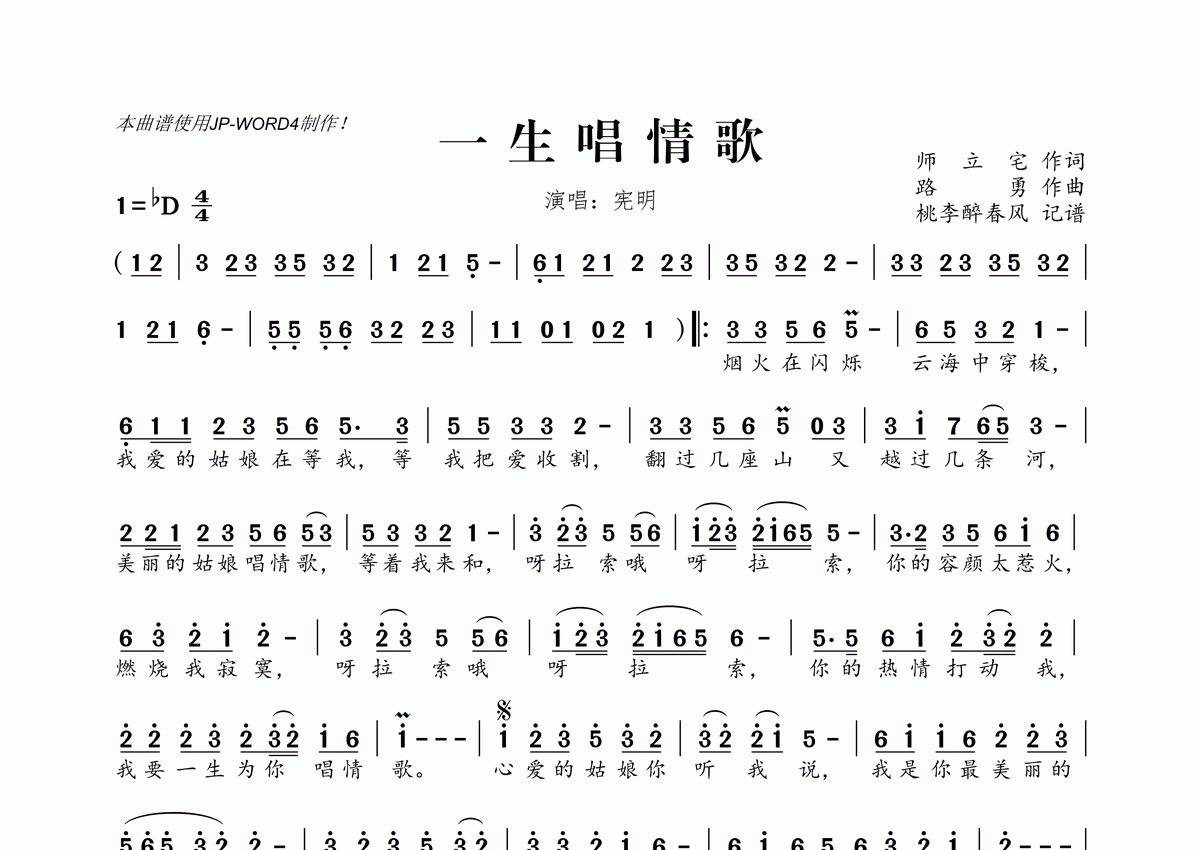 宪明《一生唱情歌》简谱