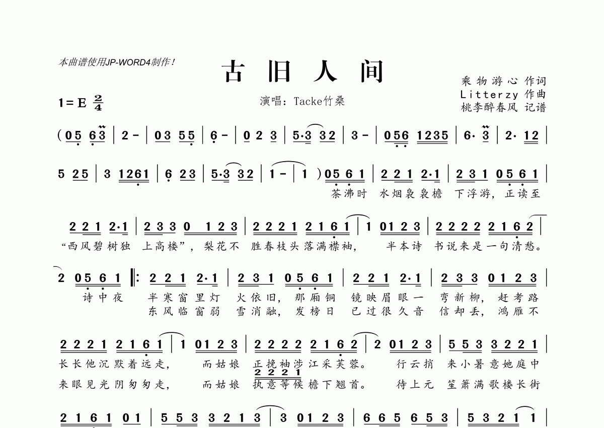 Tacke竹桑《古旧人间》简谱