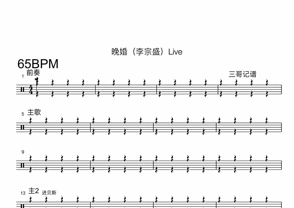 李宗盛《晚婚》鼓谱 - 架子鼓谱